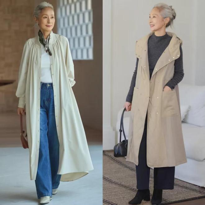 除了肩线,衣服的“线条感”也特别影响整体效果。很多姐妹到了中年,会喜欢穿宽松的长款衣服,觉得能遮肉显瘦,但往往穿出来的效果是拖沓又压个子,反而显得更没精神。