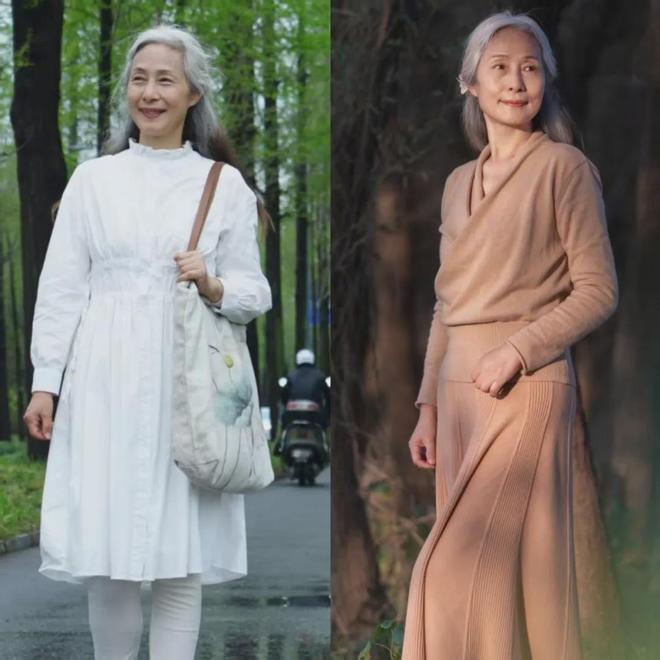 小编觉得她的穿搭,应该是很多被白头发困扰着、不知如何穿衣打扮的姐妹们的福音,我们可以试着在她的穿搭中,找到适合自己的打扮,让自己也能看起来优雅从容。