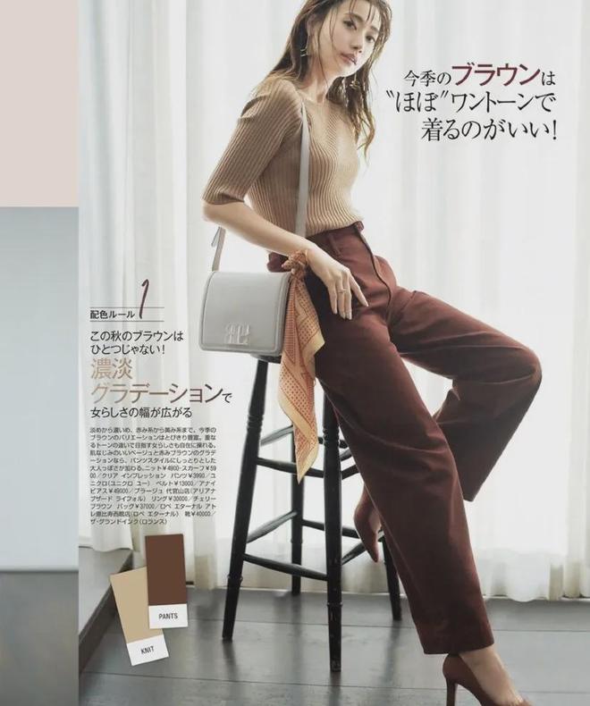 卡其色针织毛衣以简约大气成为永垂不朽的穿搭风格,上身即显低调高级,搭配一条焦糖色阔腿裤,暖调色系的和谐碰撞自带温柔气场,既衬得肤色透亮,又完美释放出女性的潇洒、自由与独立魅力,将大女人的十足气场展现得淋漓尽致