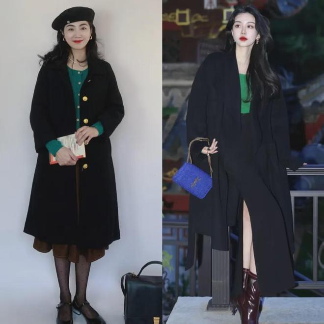 比如墨绿色、军绿色,这些绿色不怎么挑肤色、挑年龄,而且色调暗和黑色大衣搭在一起,也不容易失去协调感。
