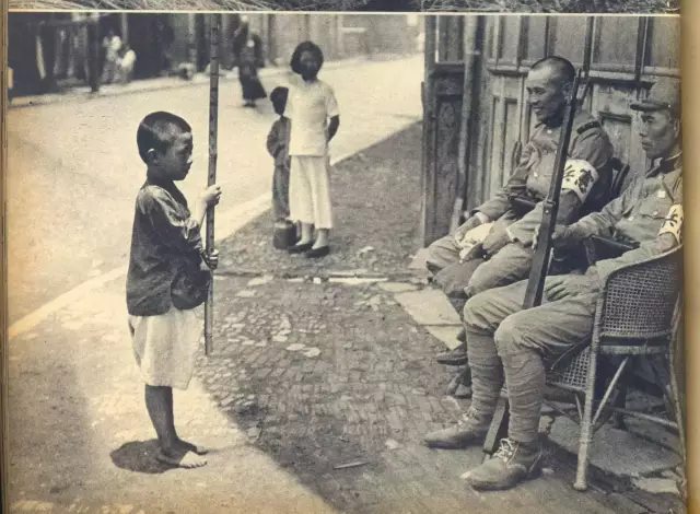 占领南京的日本宪兵强迫中国男孩向他们行持枪礼