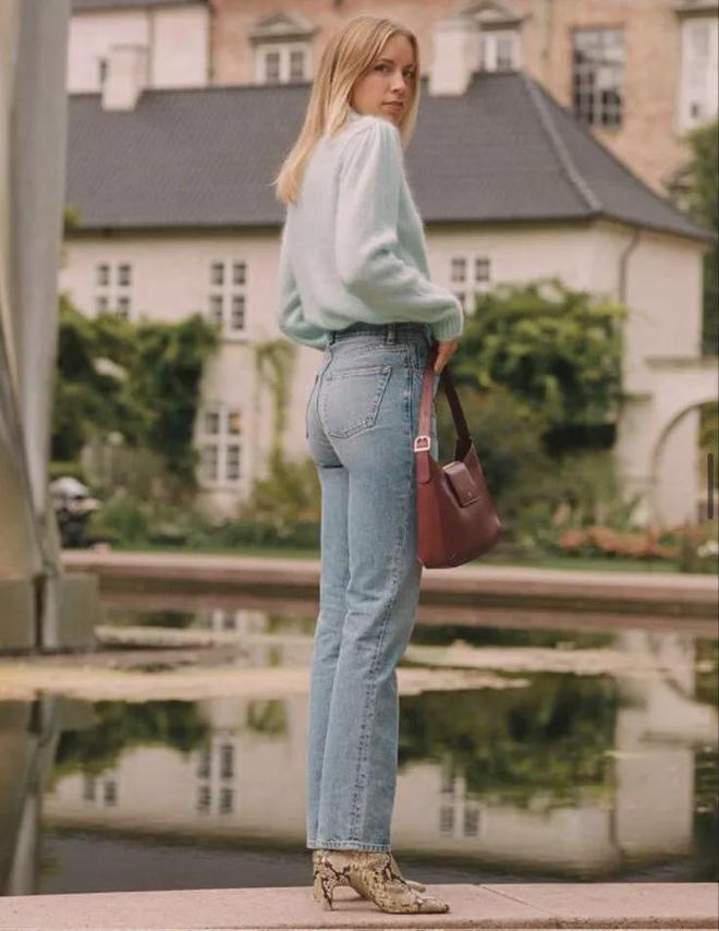 白色奶奶衫,用简单的颜色穿出高级的质感,获得舒适自在的感受,搭配一件蓝色低腰裤,越是简单越能穿出干练气质,一双黑色乐福鞋的打底,将女性的优雅和男性的帅气结合起来,即干练又高级