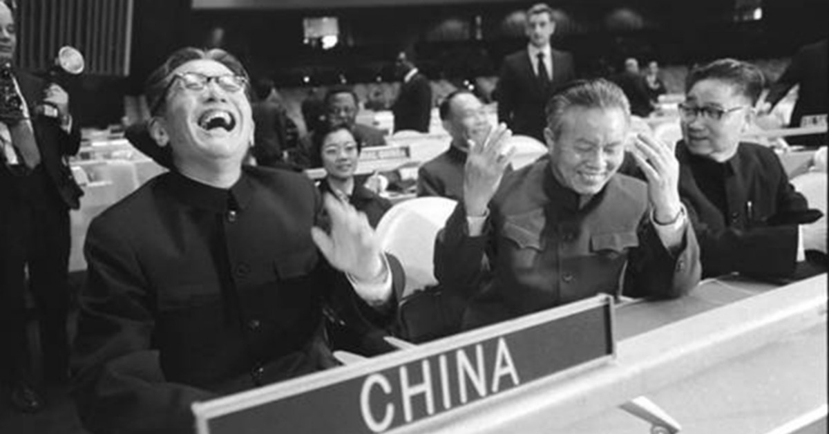 1971年10月25日,联合国大会第2758号决议获表决通过,中华人民共和国恢复在联合国合法席位。乔冠华、黄华发出由衷的欢笑。 资料图