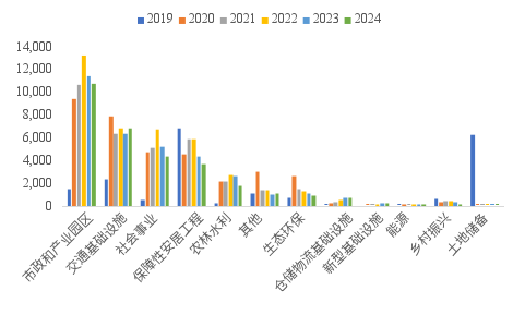 从地方政府专项债券的项目投向看,具体方向跟随政策变化而进行调整,背后的原因可能是增强政府投资效益、重点领域“补短板”、防范化解风险等。比如,2019年9月,为了引导专项债资金更好用于项目建设,专项债资金不再用于土地储备和房地产相关领域、置换债务以及可完全商业化运作的产业项目;结合房地产市场形势变化和实际需要,2025年支持运用专项债券开展土地储备工作,优先将处置存量闲置土地清单中的地块纳入土地储备计划。