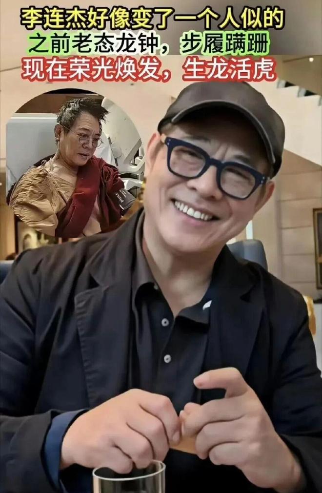 其实大家有所不知,李连杰如今的好状态并非偶然,背后藏着钞能力加持的秘密。早有消息曝光,他这几年为了改善健康状况,特意尝试了海外高端“回春黑科技”,也就是外界热议的神秘“回春术”,这才短短几年从缠绵病榻到返老还童。要知道前几年,李连杰因甲亢缠身,再加上年轻时拍武打戏落下的满身旧伤,身体状况一落千丈,不仅身形消瘦、眼窝深陷,甚至一度需要靠轮椅出行,被迫隐居多年,极少出现在公众镜头前,每次曝光的照片都尽显老态,还一度传出病危的消息。