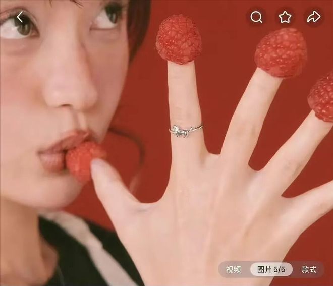 事情的起因的是赵露思个人品牌近期上架的一款新戒指,本是件常规的带货推广,但宣传图真的看到有点让人不适,整张图的重点完全偏离了核心产品戒指,画面主体竟是占据大半篇幅的吮吸手指特写,戒指被放在角落位置,知道的以为在卖戒指,不知道的还以为是卖点啥不干净的。明眼人都能看出,这哪里是在推广饰品,分明是借着擦边的动作博眼球,刻意制造话题度。