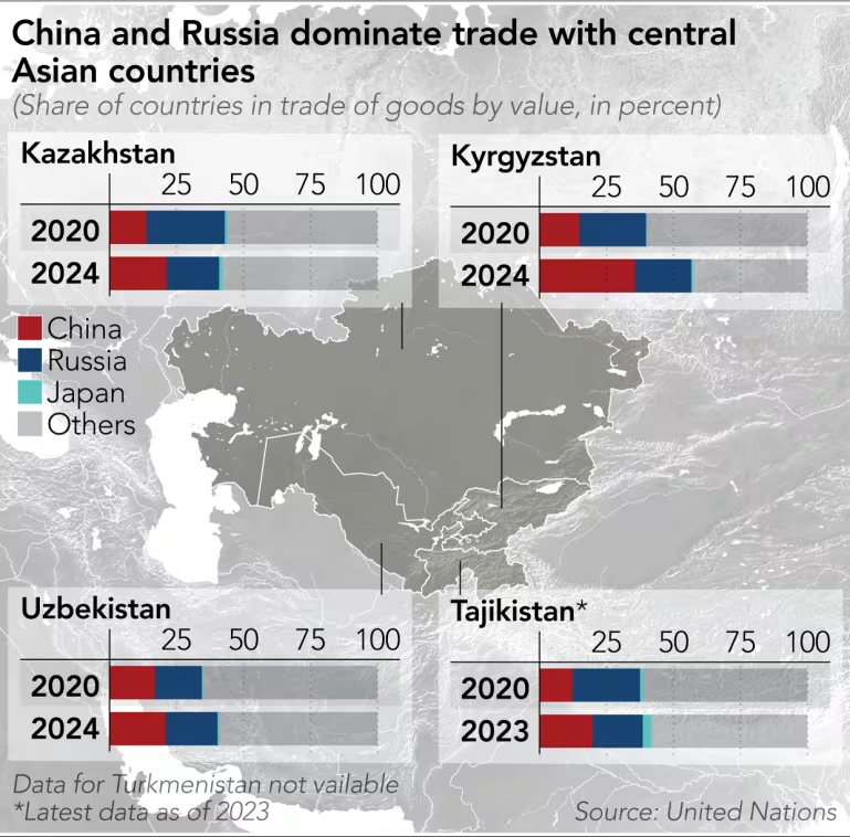 最主要的原因是,中亚五国在政治上仍倚重俄罗斯。与此同时,中国在中亚的经济影响力日益增强。在中俄协同合作的大背景下,形成了中亚基本的地缘政治格局。