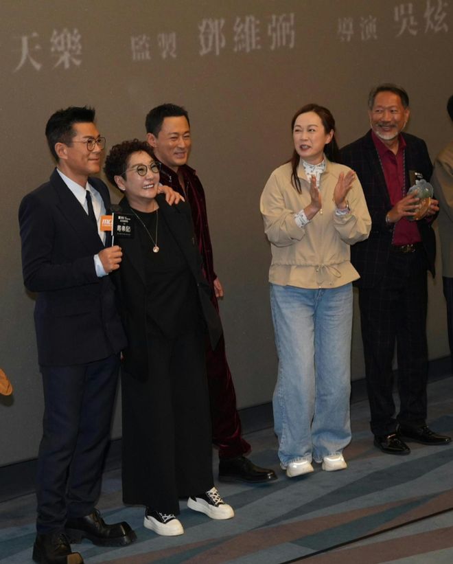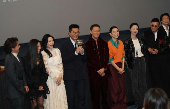 随后众人前往影院谢票时,古天乐发现剧版饰演“雅夫人”的雪梨、“朱姬”的姚莹莹,以及前TVB金牌监制梁家树都坐在观众席,当即邀请三人上台一同合影。