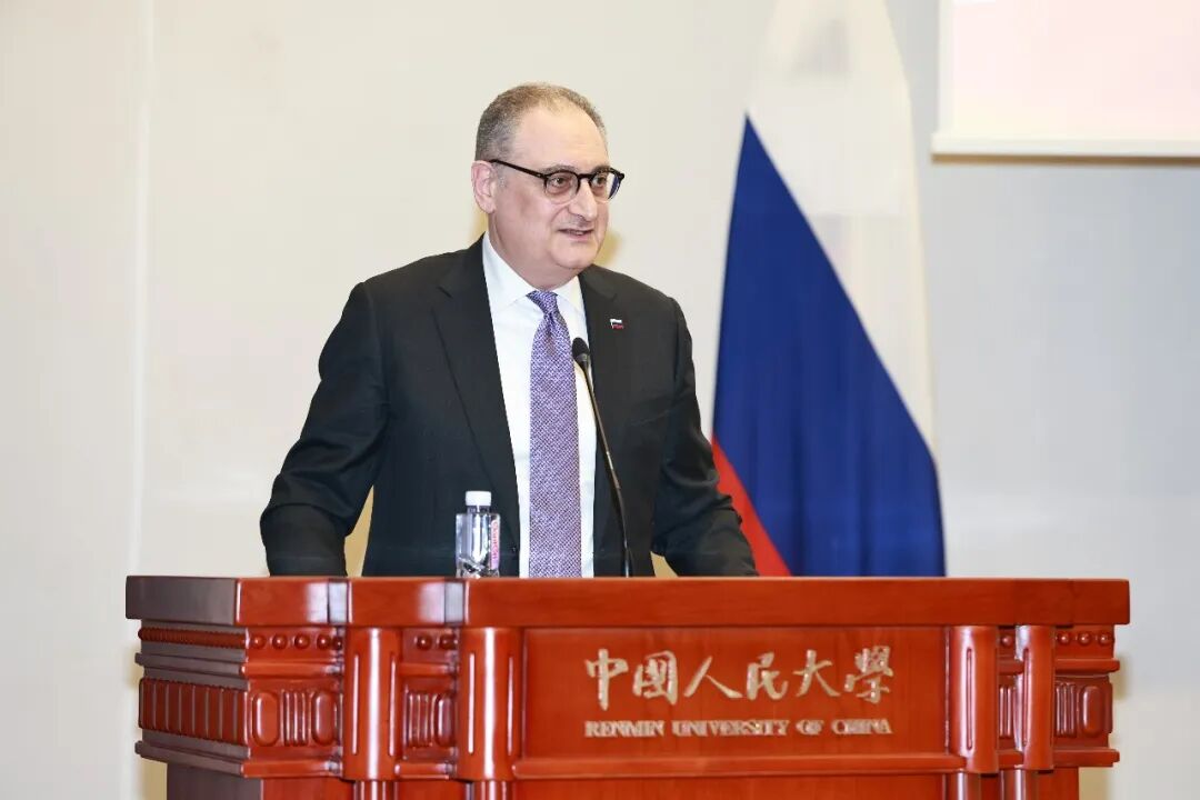 12月23日,俄罗斯驻华大使伊戈尔·莫尔古洛夫到访中国人民大学,并做客重阳金融研究院区域国别论坛“大使讲坛”,发表题为“2025年中俄关系回顾”的主题演讲。