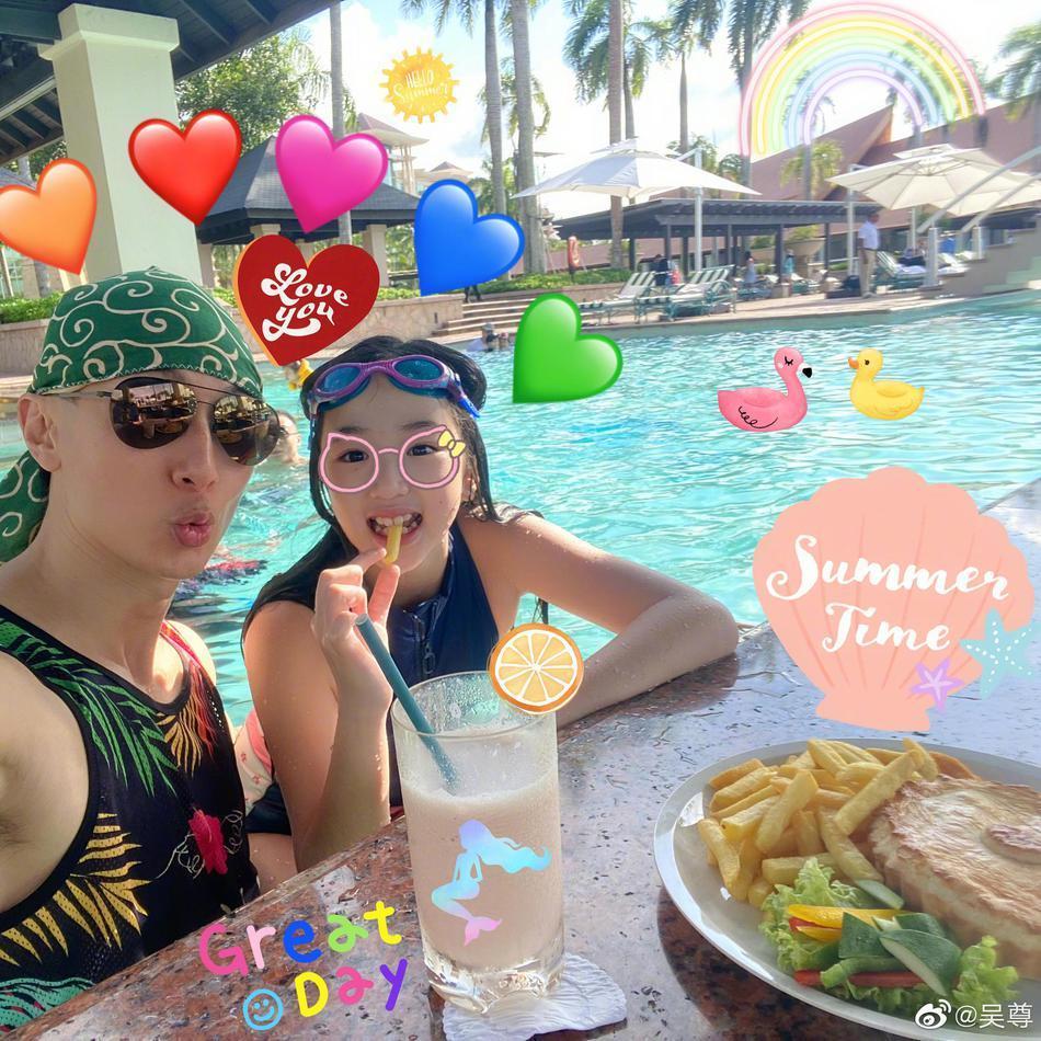 吴尊晒出带Max和NeiNei度假的照片,配文:“努力了一整年... Max和NeiNei最想要的礼物就是... 去住酒店感受放松度假的乐趣!要创造幸福回忆就是要多陪伴。”照片中吴尊在泳池也大方秀出好身材,Max、NeiNei与爸爸和小伙伴们玩得开心。
