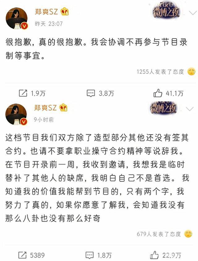 不过对于这一点郑爽后来也澄清了,她说录制这档节目她和节目组除了造型部分,其他地方都还没有签合约,那她现在选择不录制该节目,也并不是违约,而且她这次的选择还获得了哥哥们的力挺。