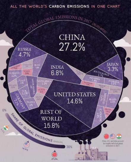 当前中国是碳排放最多的国家,原因就是中国作为“世界工厂”和工业第一大国,拥有很多排放量大、污染相对严重的企业,上亿人的生计依赖于此。