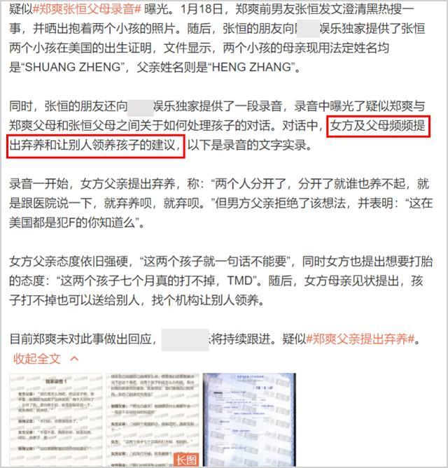 1月18日下午1点钟,郑爽前男友张恒突然发文,针对抹黑、造谣诽谤自己的人喊话,声称要维权,而张恒在长文中有一句话则引起了人们的注意:自己一直在保护和照顾两个无辜的孩子!