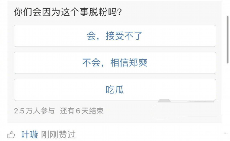 另外一边,女星叶璇也被发现点赞关于郑爽的相关内容,但她的态度究竟是什么,暂时无人得知。