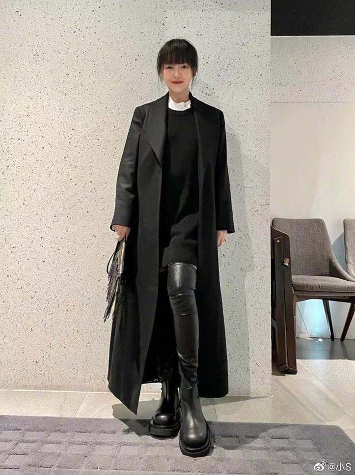 照片中,大S穿着黑色大衣搭一双过膝皮靴,超V型的网红脸和纤细的长腿相当吸睛,少女般外貌瞬间引起热议,根本看不出她已经45岁了。