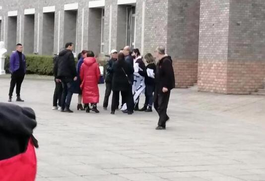 网络爆出的图片显示:该校科技馆很多人围在一起,有人拉了横幅,有个阿姨绝望地对路人叫喊。