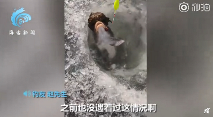 1月24日,辽宁鞍山钓友在冰钓时钓上一条鲤鱼。令人称奇的是,一只蛤蟆附在了鲤鱼头上,死抠着鲤鱼眼珠不放。钓友们都懵了,随后开始兴奋解说,称之为“金蟾抱鲤”、“金蟾献礼(鲤)”。钓友表示,钓鱼十多年第一次遇到这种情况,拍照留念后就把鲤鱼和蛤蟆一起放生了。