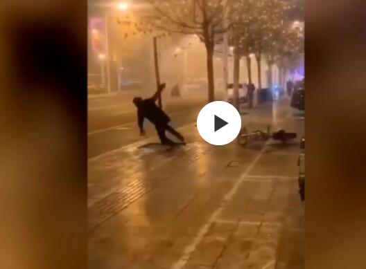 1月25日凌晨,河南郑州街头一个醉酒男子对着一棵小树杆拳打脚踢。可能由于下雨地滑,醉酒男子竟然被小树接连“KO”,12秒内三次跌倒,却仍然爬起继续打。