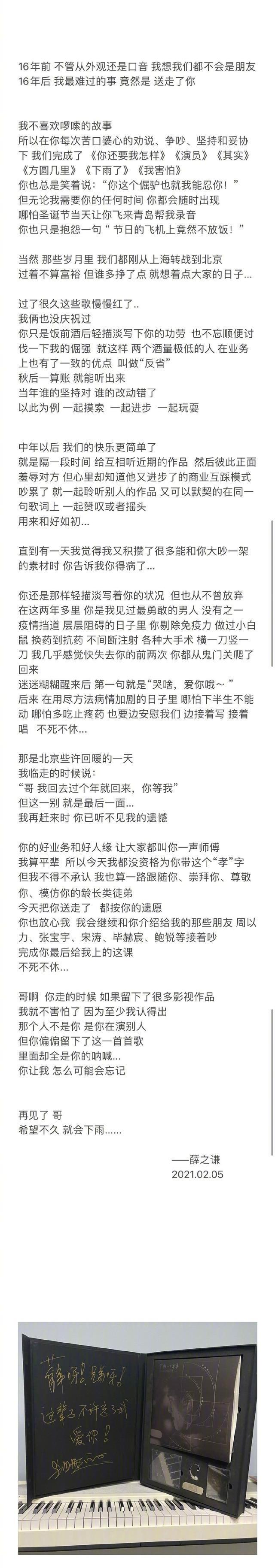 薛之谦发文悼念赵英俊 称自己与赵英俊在16年前相识