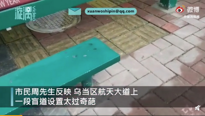 2月5日,贵州贵阳的周先生反映,乌当区航天大道上,一段盲道设置太过奇葩。视频中,为了让盲道绕过路中的一个井盖,竟然弯弯拐拐的钻到了旁边公交车站架子下面。周先生称,既然要设置盲道,就不要敷衍。