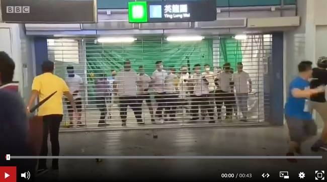 2019年7月,香港元朗地区发生冲突事件,BBC在中文和英文平台发布了不同版本的现场视频,意图混淆视线。