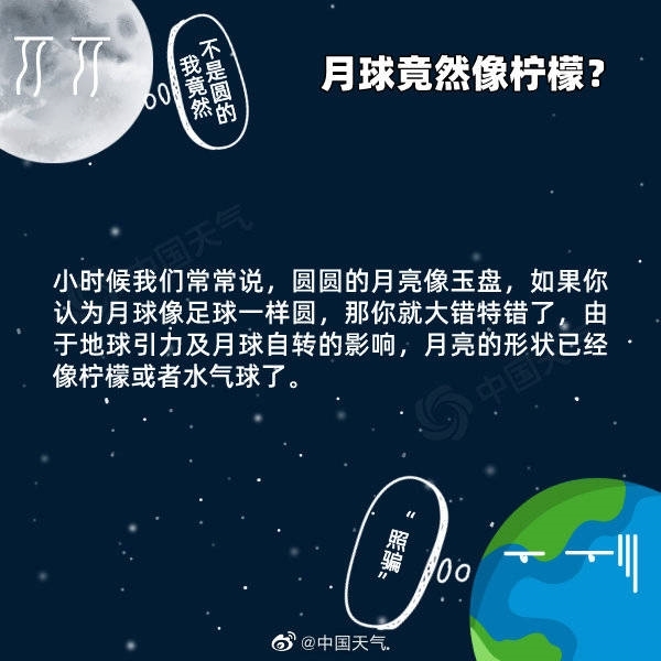 从冷知识中可以看到,首先是月亮的形状,其并非是圆形,由于地球引力及月球自转的影响,月亮的形状已经像柠檬或者水气球了,同时月球长时间都是静止状态,其自转一圈要708小时。