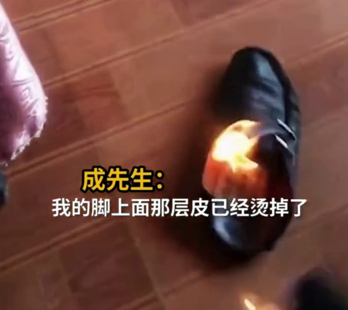 于是他拿着打火机对着自己的皮鞋内点火,没想到皮鞋内真的点燃了。情急之下,男子打算用脚去灭火,结果脚上的袜子也不慎被点燃。