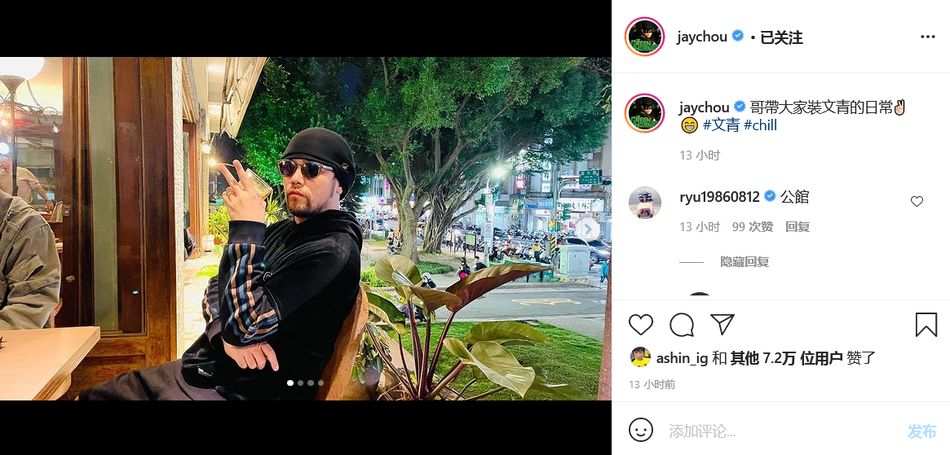 周杰伦晒与好友聚会自拍 并配文:“哥带大家装文青的日常。”