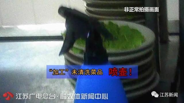 知情人告诉记者,他通过询问配菜员得知,香菇、娃娃菜、金针菇等菜,如果清洗的话不容易保存,而且洗后不好看,所以上桌前往往会在菜品上喷点水。