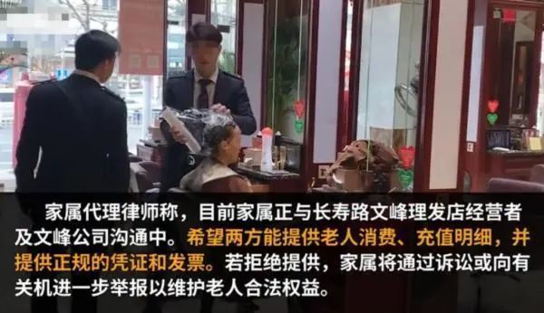 老人家属的代理律师称,目前家属正与长寿路文峰理发店经营者以及文峰公司沟通中。希望两方能够提供老人消费、充值明细,并提供正规的凭证和发票。若拒绝提供,家属将通过诉讼或向相关部门进一步举报以维护老人的合法权益。