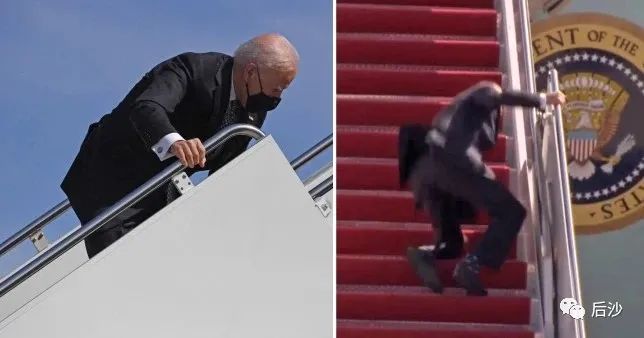 随后,拜登登上空军一号专机前往亚特兰大时,登梯时三连摔,幸好老人家身体无碍,据白宫发言人解释是“风太大”。