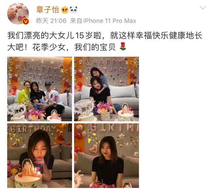 11月25日,章子怡晒出为大女儿庆生的一组照片,并配文“我们漂亮的大女儿15岁啦,就这样幸福快乐健康地长大吧!花季少女,我们的宝贝”