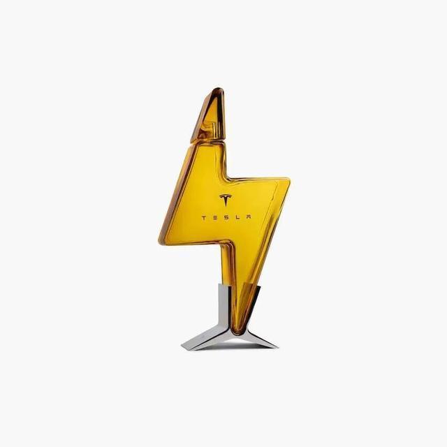 据官方介绍,Tesla 玻璃酒瓶以 Tesla 龙舌兰酒为灵感而设计,酒瓶外形酷似闪电,经人工吹制而成。饰有金色 Tesla 字标和 T 型标志,容量 750 毫升,并搭配抛光金属支架,可契合多种场合,且具收藏价值。