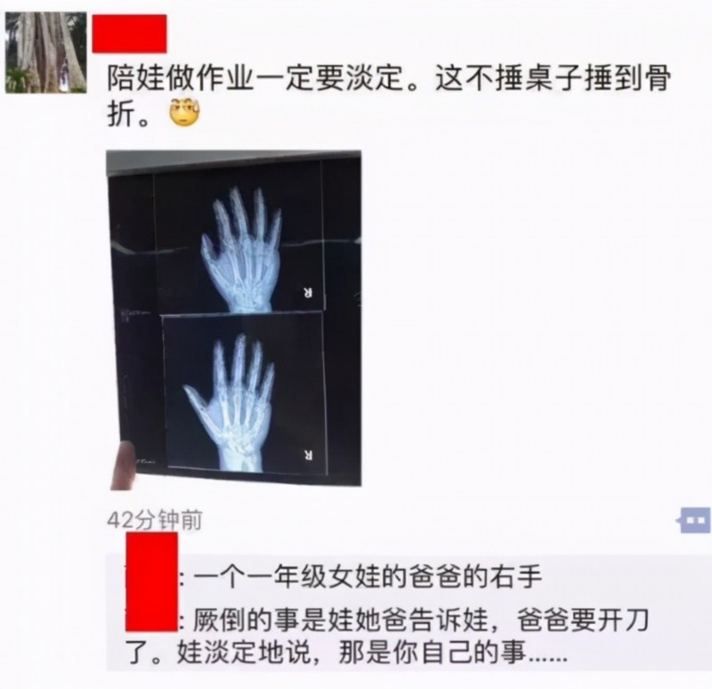 原标题:爸爸辅导孩子作业生气捶墙致骨折 网友纷纷分享心酸“血泪史”
