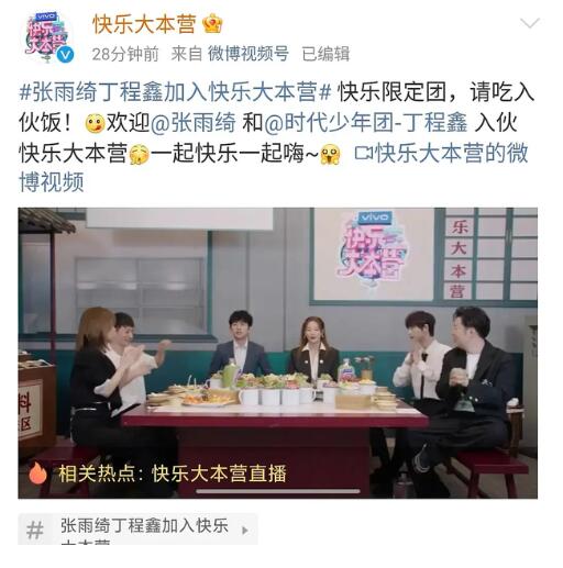 直播中何老师就正式宣布张雨绮和丁程鑫正式加入《快本》,成为常驻主持人,不过这次他们不是“快乐家族”,而是“快乐限定团”,据传合约只签了三个月。
