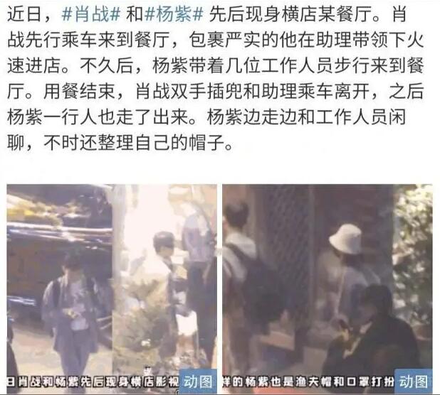近期,杨紫和肖战都在横店拍社自己的新戏,有网友曝光了两人私下聚会的画面,引起热议。