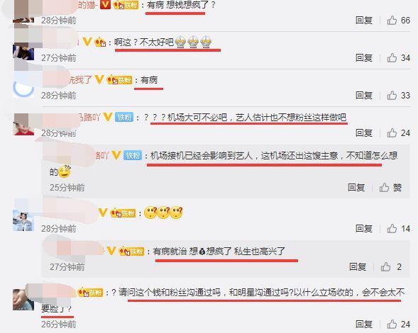 对此,网友纷纷怒斥:有病,想钱想疯了!机场大可不必,艺人估计也不想粉丝这样做吧!机场接机已经影响到艺人,这机场还出这馊主意,不知道怎么想的?请问这个钱和粉丝沟通过吗?和明星沟通过吗?以什么立场收的,会不会太不要脸了?想钱想疯了,明目张胆开始搞了?