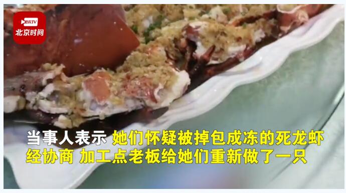 当事人表示,她们怀疑被掉包成冻的死龙虾。经协商,加工点老板给她们重新做了一只。有网友调侃,这龙虾重生能力太强了。