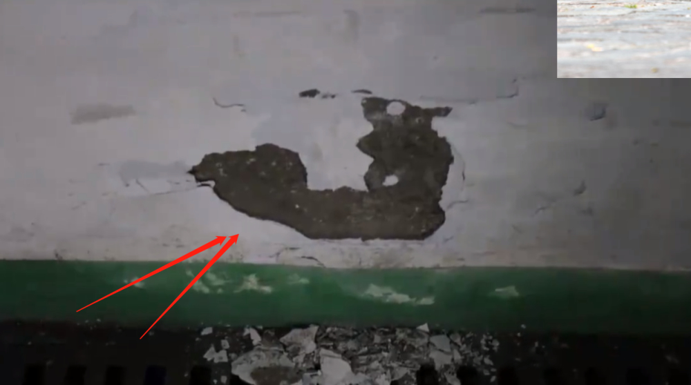 现在在罗女士小区的地下车库内,还有两条非常明显刹车留下的痕迹,墙上有一块墙皮已经脱落,这是遭受撞击后而留下的痕迹,而罗女士车子的车头也因为遭受撞击出现了脱漆。