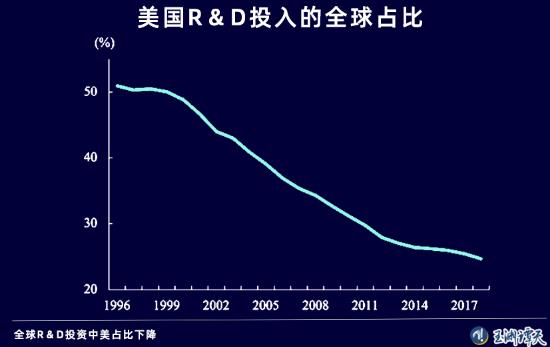 同这些具体行业情况相比,更让美国焦虑的是另一组数据:60年代至今,美国公共研发投资占GDP的比例已经从2%跌至不足0.6%,公共研发投入明显不足。
