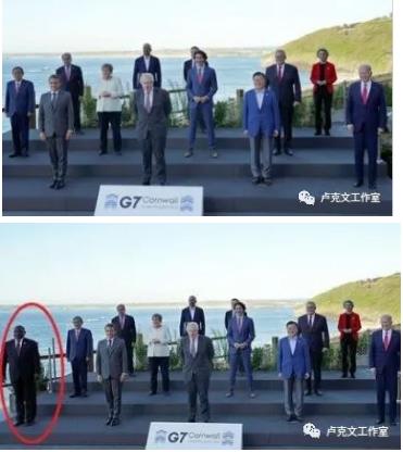 今年G7不是闹了个笑话么,韩国媒体看到文在寅合影时,站在英国首相和美国总统的中间,就把合影里的南非总统给剪掉了,形成了文在寅身在C位的样子,随后日本媒体发现菅义伟位置太偏,也剪了个菅义伟在C位,剪掉文在寅的合影。