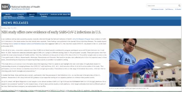 将美国新冠肺炎感染首例时间向更早推进的,NIH的报告并非第一个。
