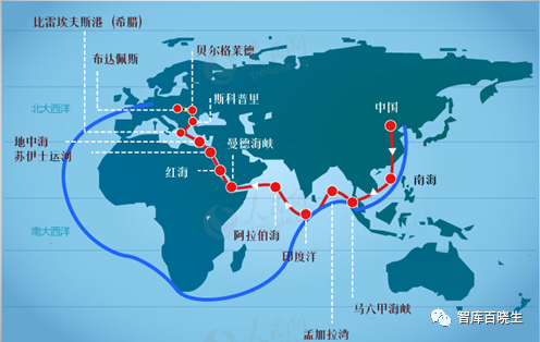 先看一张一带一路的图,一条海运,一条陆运,历史上,欧洲是丝绸之路的终点,今天也是。