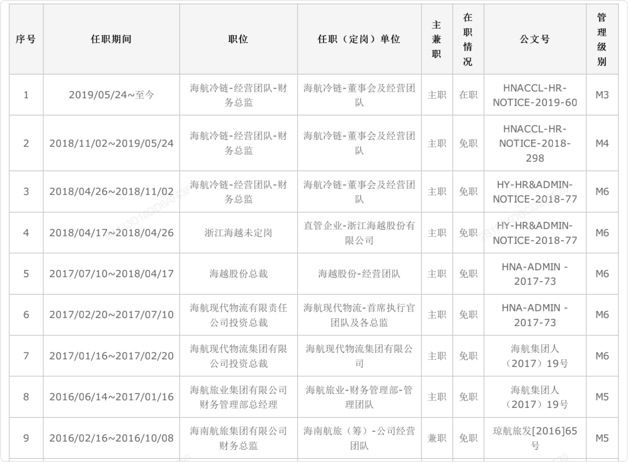 不过,海航冷链2019年度报告显示,因个人工作变动原因,史禹铭已经从海航冷链离职。凯撒旅业也于2021年7月27日透露,公司原财务总监史禹铭因工作调整不再担任财务总监职务,并不再担任公司其他职务。