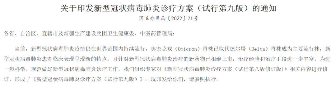 最近,国家卫健委发布了第9版新冠肺炎治疗方案。这个方案最大的亮点就是对病例实施分类收治,调整出院时新冠核酸检测标准等。