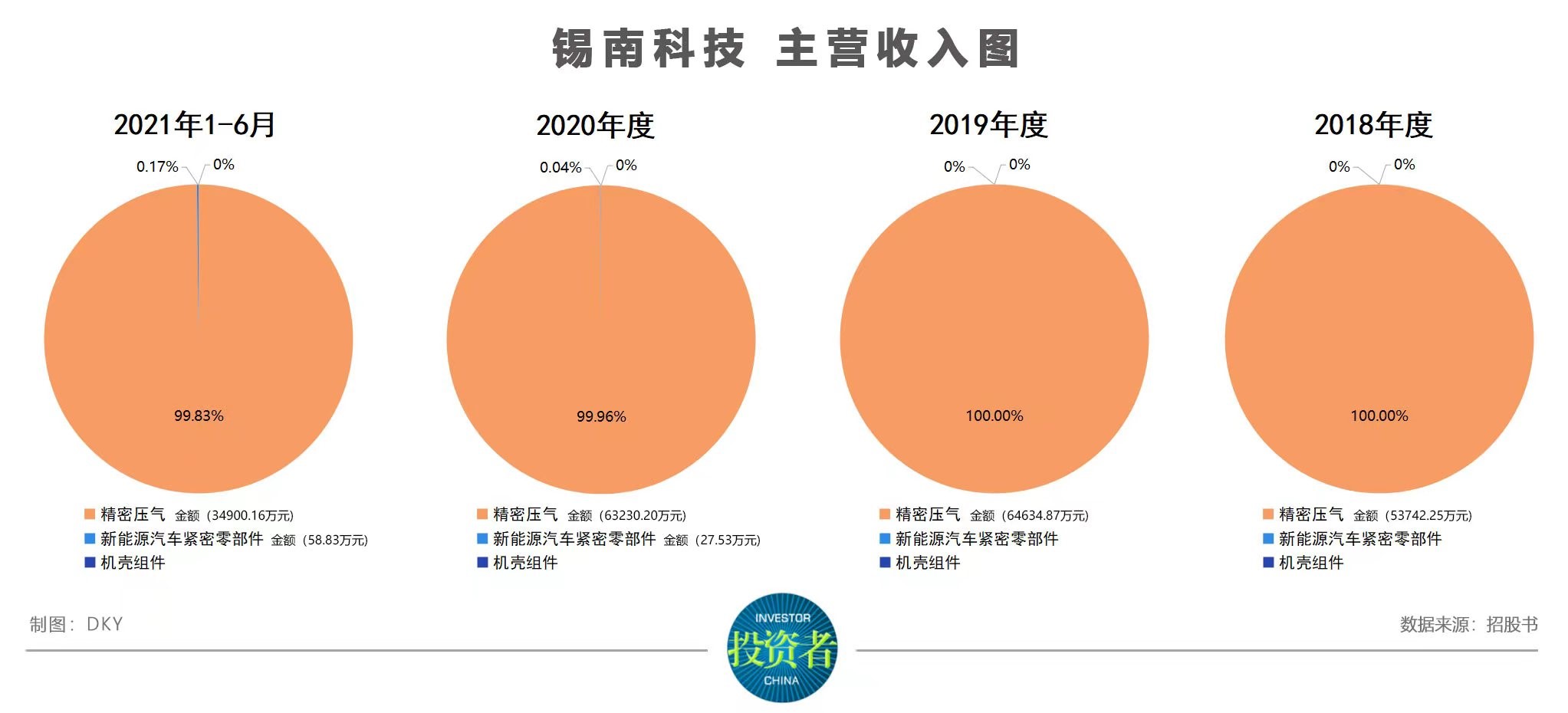不过,值得注意的是,据招股书,此次募资金额超半数拟用于新能源汽车相关项目。数据显示,报告期内锡南科技新能源汽车精密零部件收入贡献占比较低,仅在2020年及2021年前半年相关收入分别为27.53万元、58.83万元,占主营业务收入分别为0.04%、0.17%,公司的收入仍严重依赖精密压气机壳组件业务。若成功上市,下一步,锡南科技将如何实现结构性突破,打开新的增长空间,拥抱新能源汽车产业变化,《投资者网》将持续关注。(思维财经出品)■