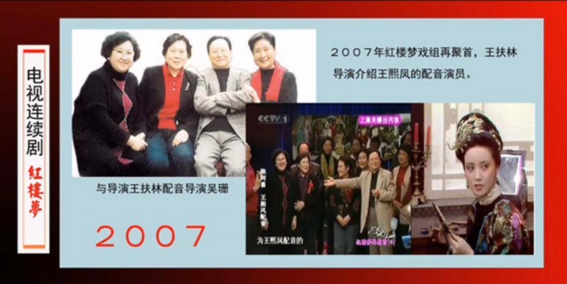 她还为《末代皇帝》中的婉容、《唐明皇》里的太平公主、《四世同堂》里的尤桐芳、《篱笆女人和狗》系列三部曲里的巧姑等角色配音。