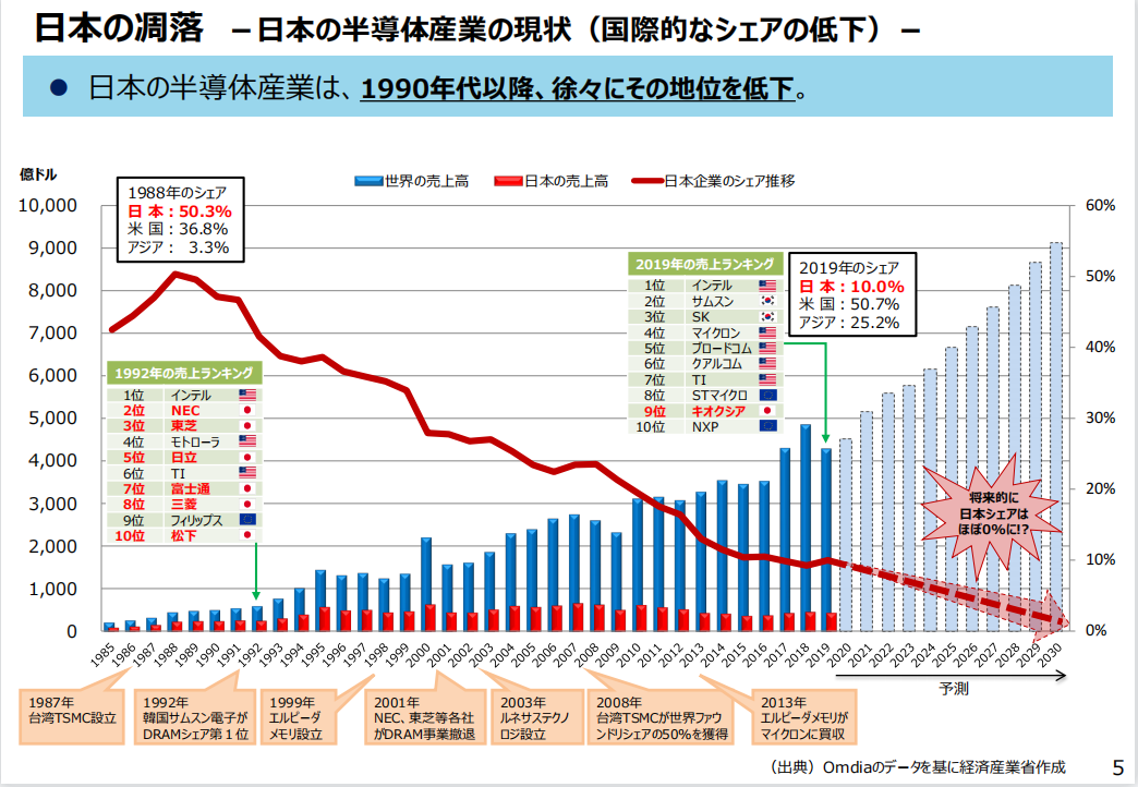 但由于尼康在和阿斯麦的光刻机争霸战中押错路线,日本光刻机从此被踢出半导体制造设备的核心市场,连带着供应链下游的芯片生产订单也被韩国和台湾瓜分。到2020年,全球半导体前十强企业名单中,日企仅剩下东芝这一家,市场占有率更是从50.3%暴跌至10%。