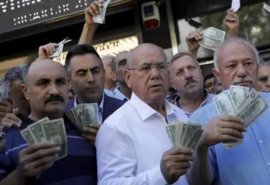 在通胀和货币贬值的双重刺激下,为避免一夜爆穷,土耳其民众纷纷抢着用里拉换美元、欧元,囤黄金进行避险。可是埃尔多安却高喊"他们有美金,我们有人民,还有我们的神",号召大伙要一致对外,如果有谁在枕头底下藏了美元、欧元或黄金,快去银行兑换成土耳其里拉,这是国家战役!
