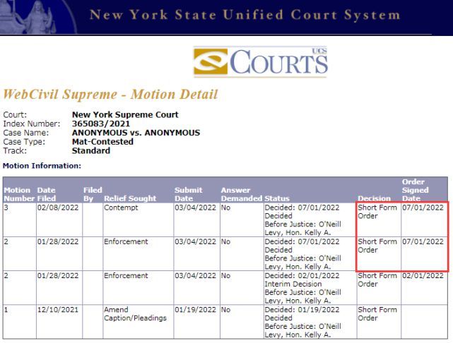 7月7日,有网友发现,王力宏与李靓蕾在纽约的离婚案件有了新进展,李靓蕾因蔑视法庭被法官于7月1日下达判罚法令,并强制执行王力宏的探视权动议。